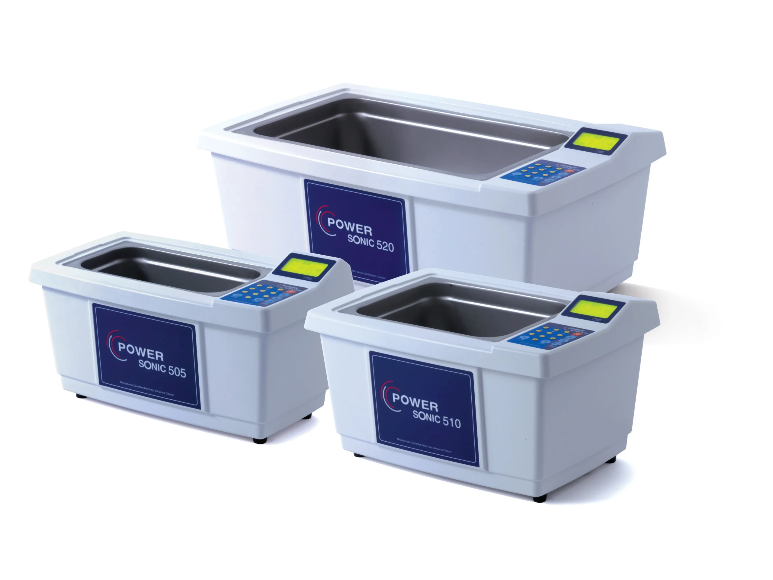 The POWERSONIC 500 series ultrasonic cleaner, including models 505 / 510 / 520, is designed to effectively remove dirt and contaminants from materials using ultrasonic waves generated by transducers through the cleaning liquid in the bath. The ultrasonic action works in all directions, thoroughly reaching every surface, recess, and opening to ensure complete and efficient cleaning.