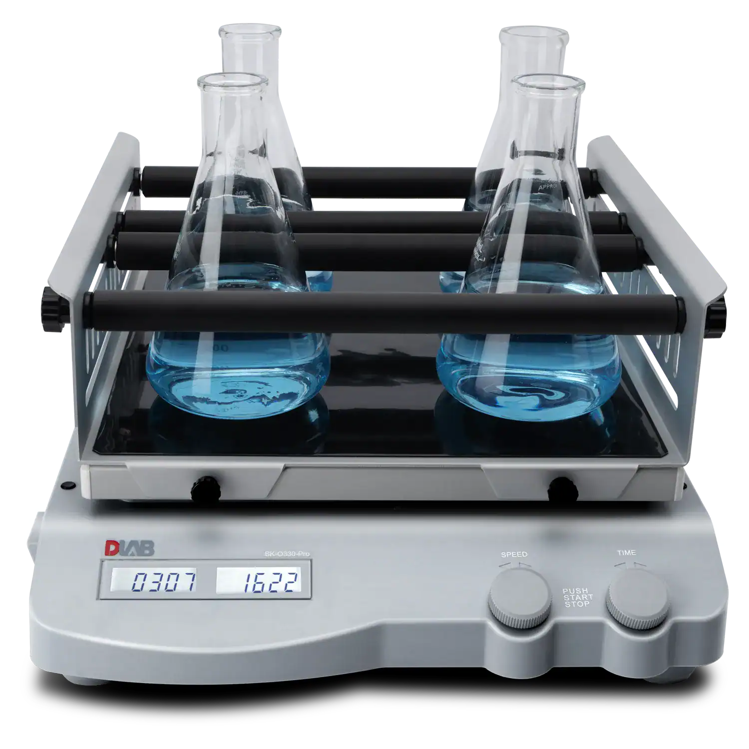 The SK-O330-Pro is a compact, multifunctional orbital shaker designed to deliver smooth and uniform shaking for various lab applications. It features an independent LCD display for speed and time, allowing precise and user-friendly control. With a load capacity of 7.5 kg (including platform) and a wide speed range of 100–500 rpm, this unit is well-suited for both light and heavy mixing needs.