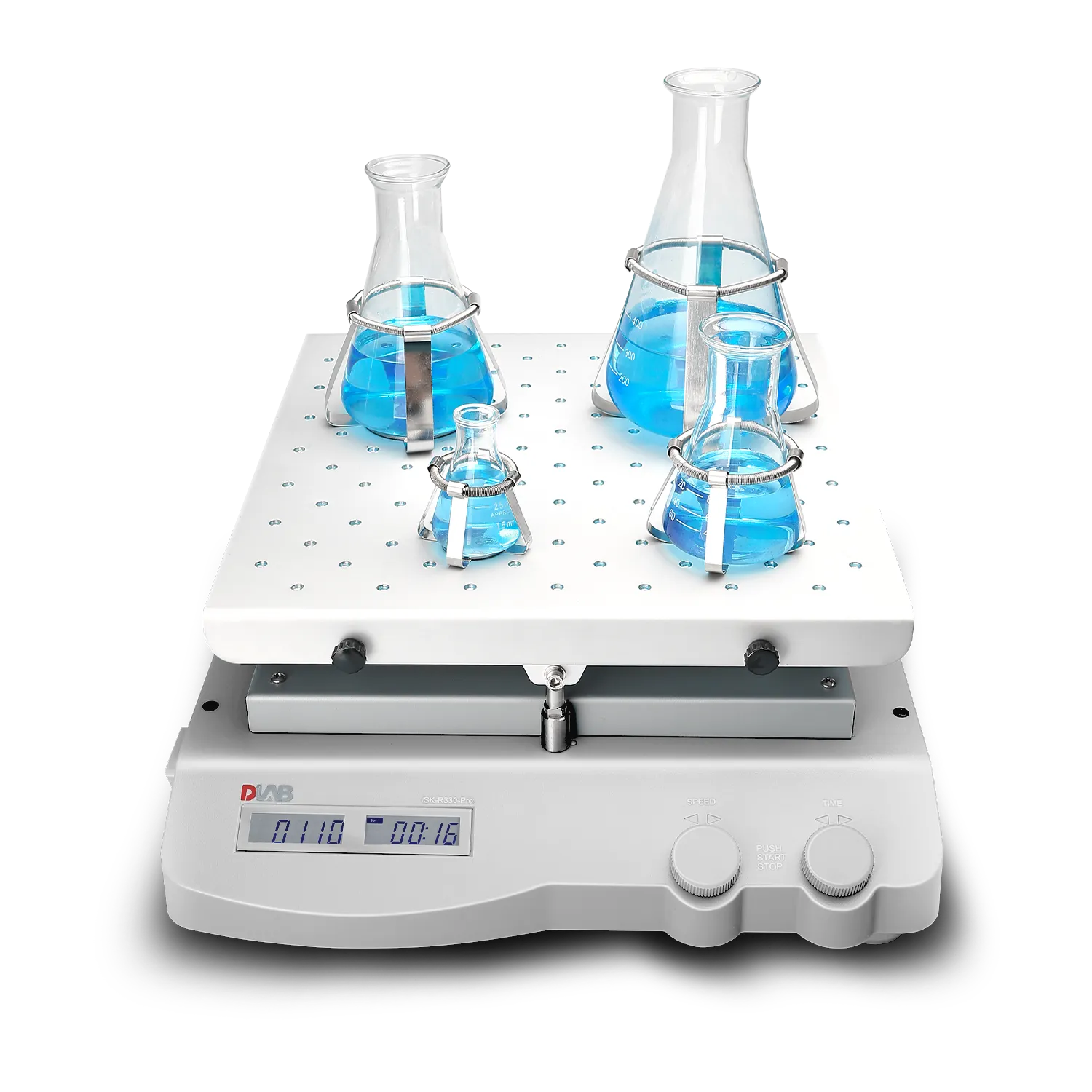 The SK-R330-Pro is a multifunctional rocking shaker designed for reliable and consistent transference motion in various lab applications. With a rocking angle of 9° and a speed range of 10–70rpm, it ensures optimal mixing performance for sensitive samples. Equipped with dual LCD/LED screens for simultaneous display of time and speed, it offers user-friendly control and precise monitoring. Operates in continuous or timer mode, adjustable up to 19 hours and 59 minutes. Compatible with a variety of platform configurations, making it ideal for flasks, dishes, and other vessels in research and clinical labs.